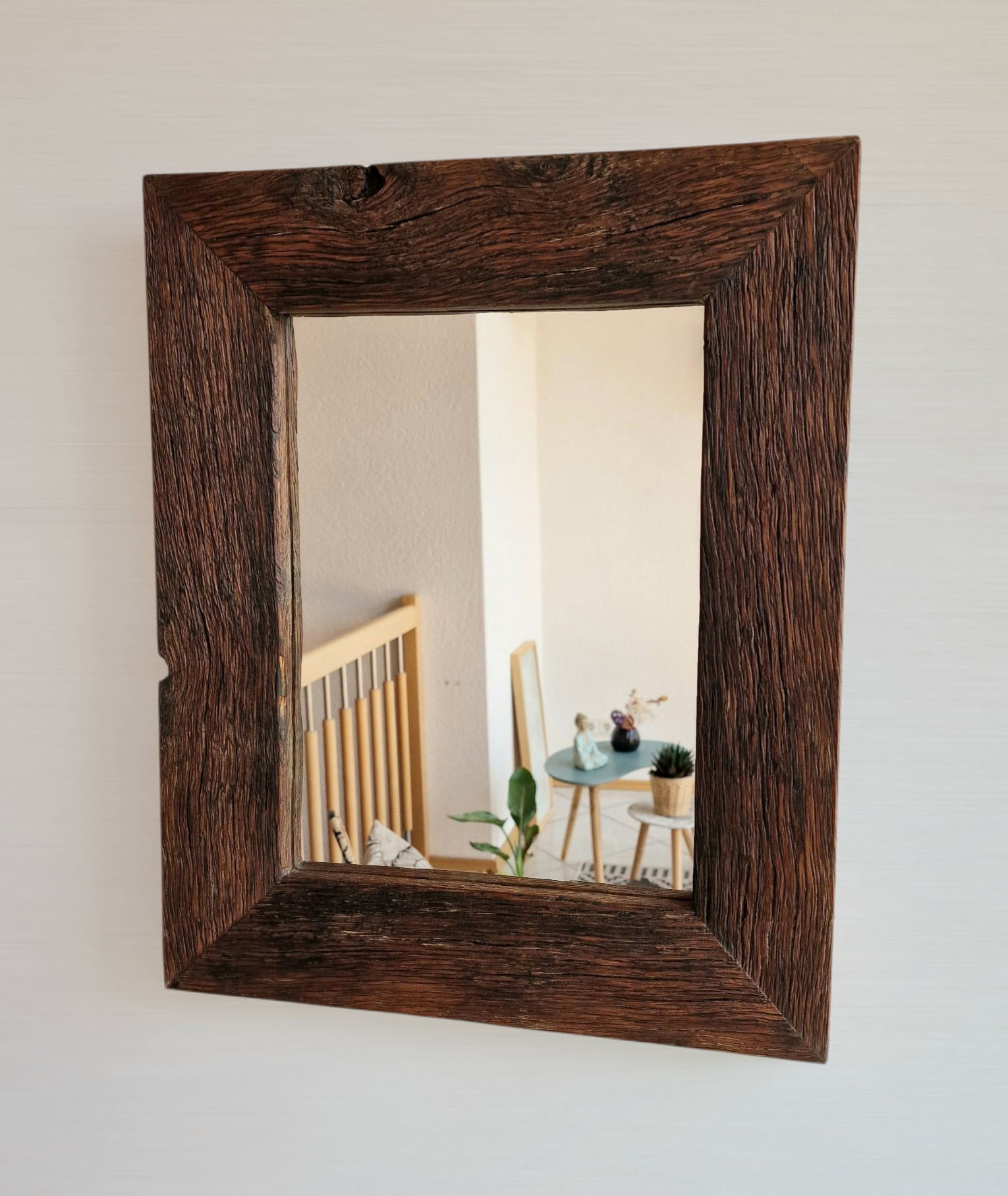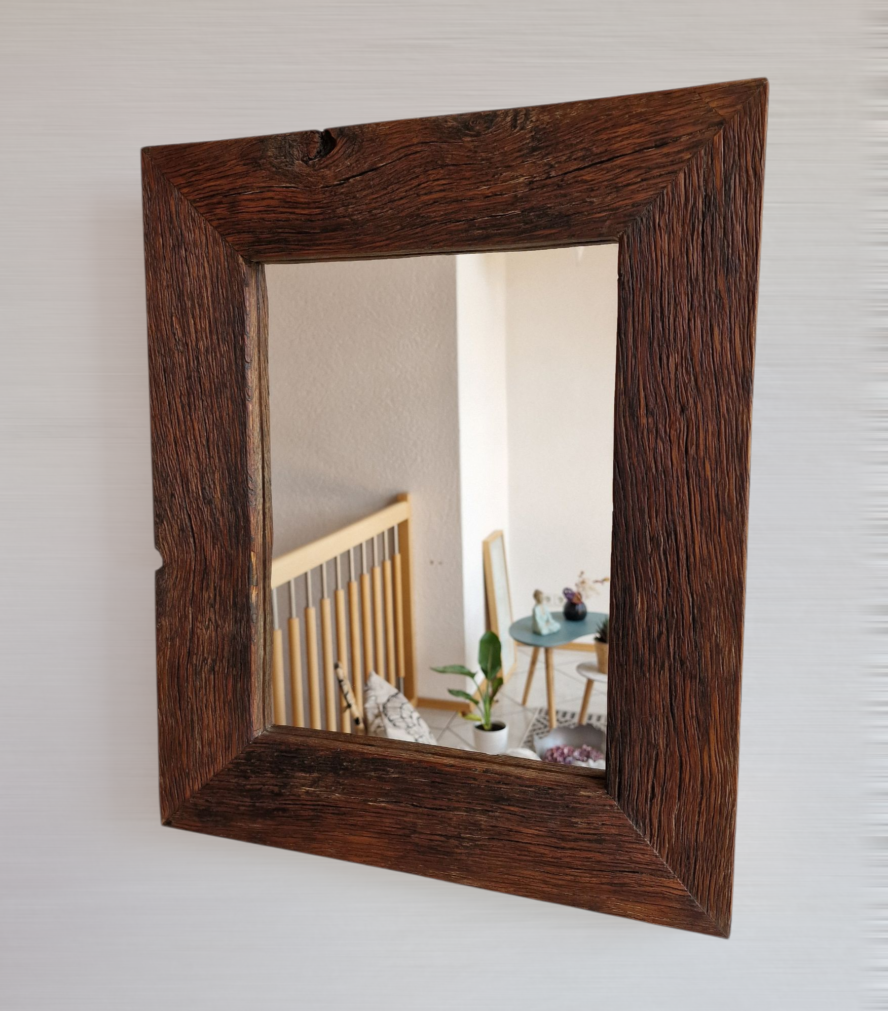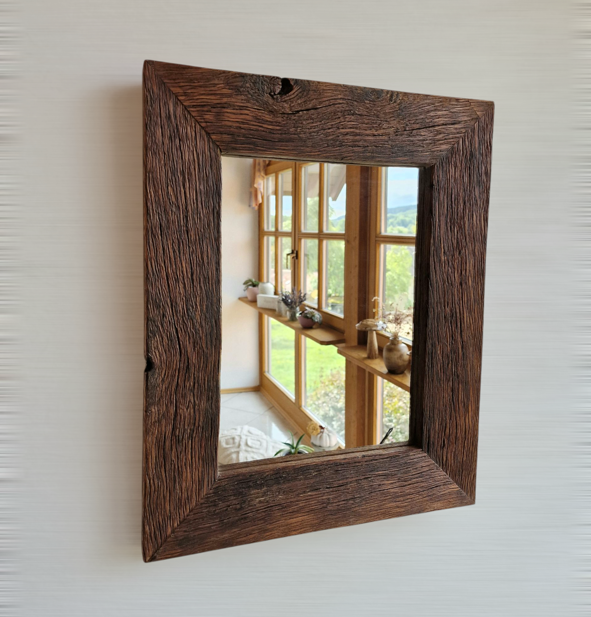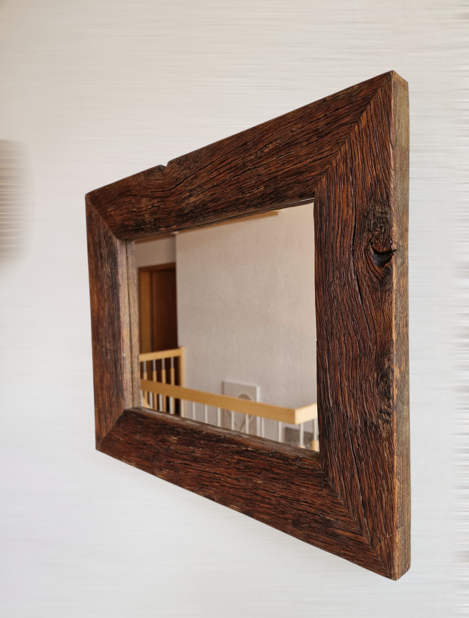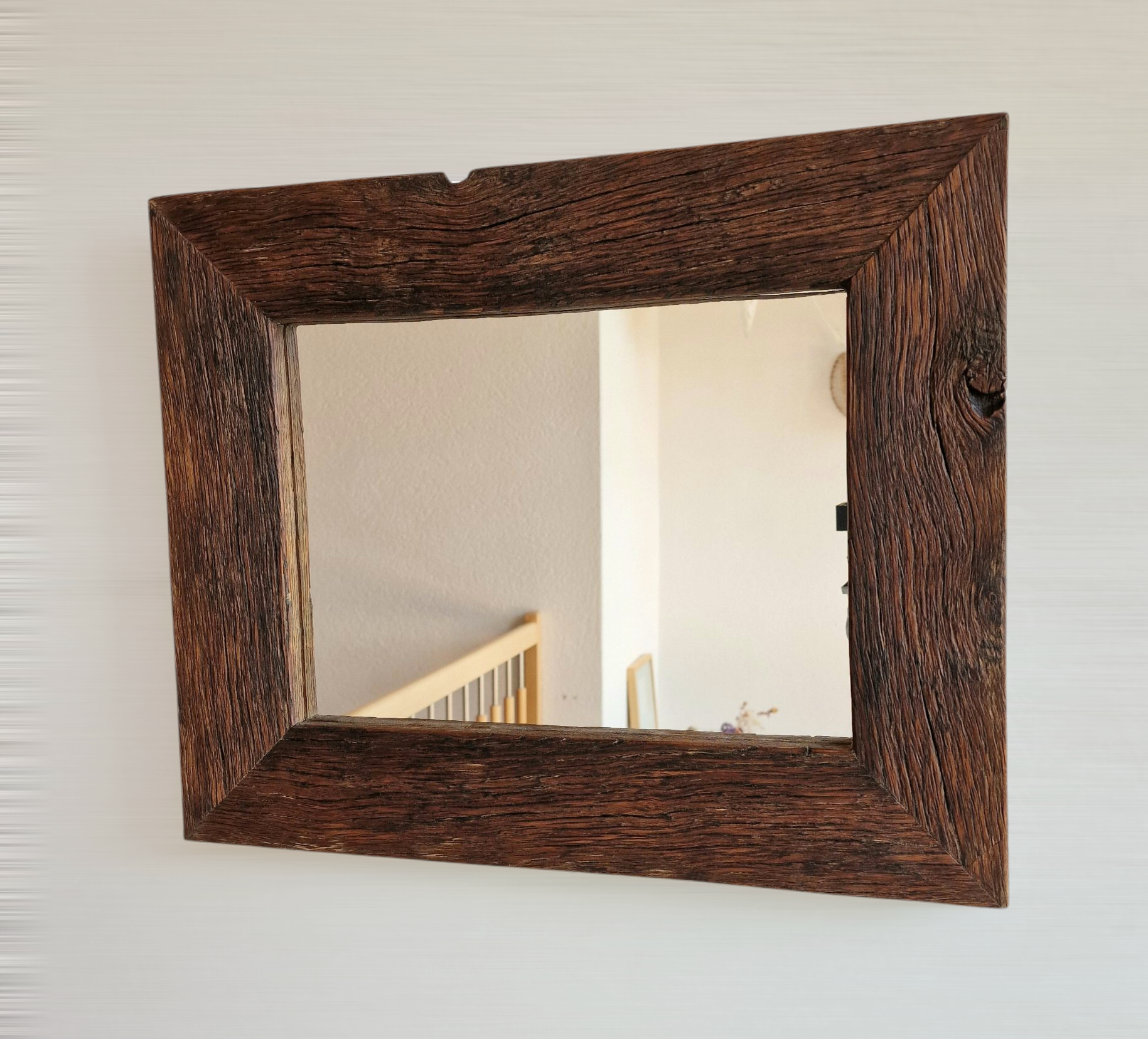 Altholz Spiegel alteiche S2182 Arber Bayerischen Wald unikat upcycling nachhaltig Wandspiegel Badspiegel WC geölt