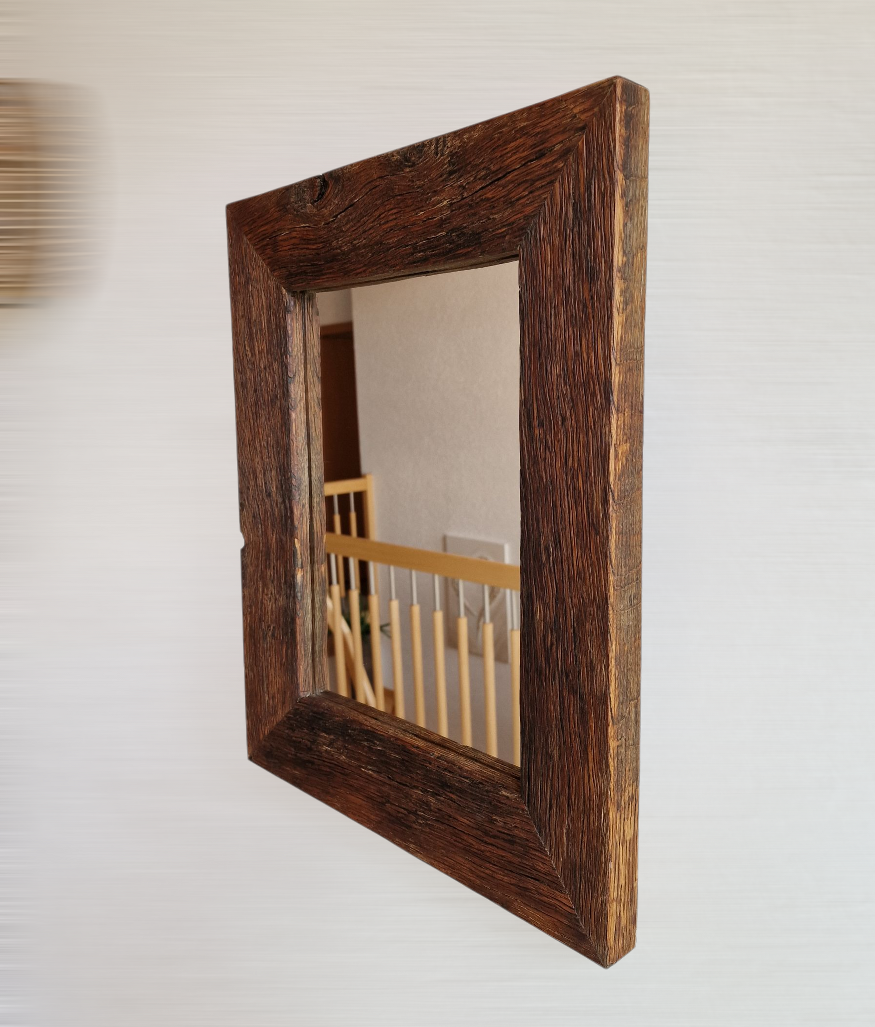 Altholz Spiegel alteiche  S2182 Arber  Bayerischen Wald unikat upcycling nachhaltig Wandspiegel Badspiegel WC geölt