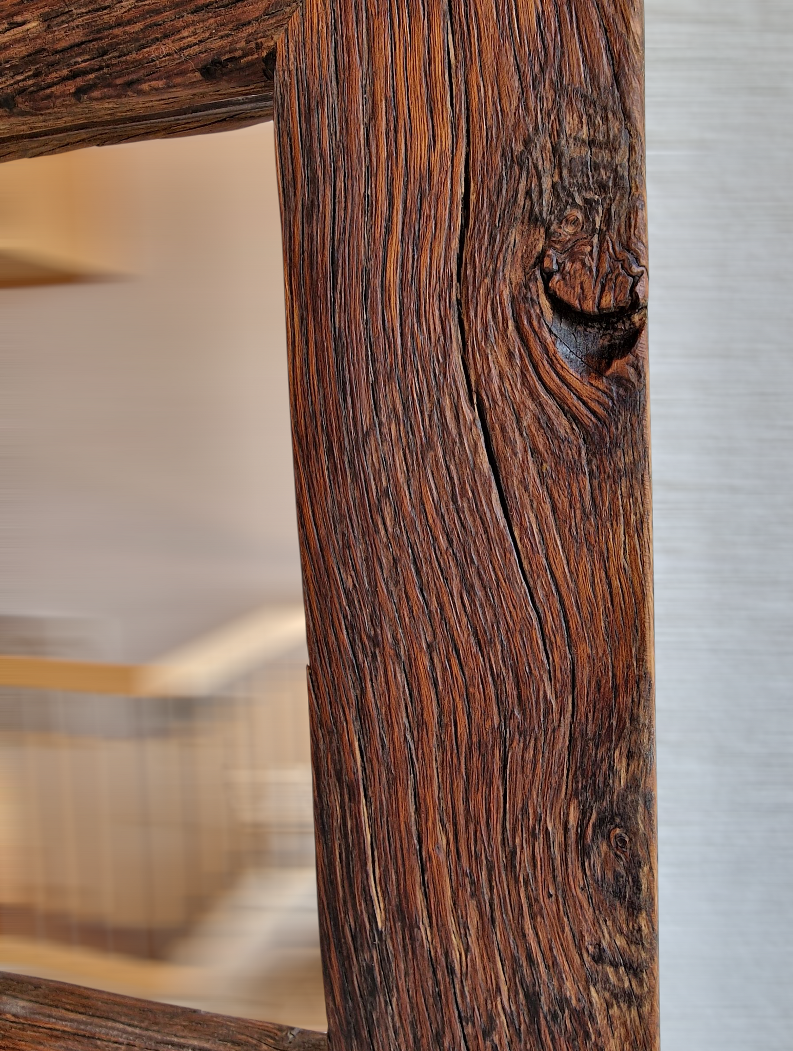 Rahmen aus alten Eichebalken eines Feuchtgebietes am Arber im Bayerischen Wald in geölter Ausführung