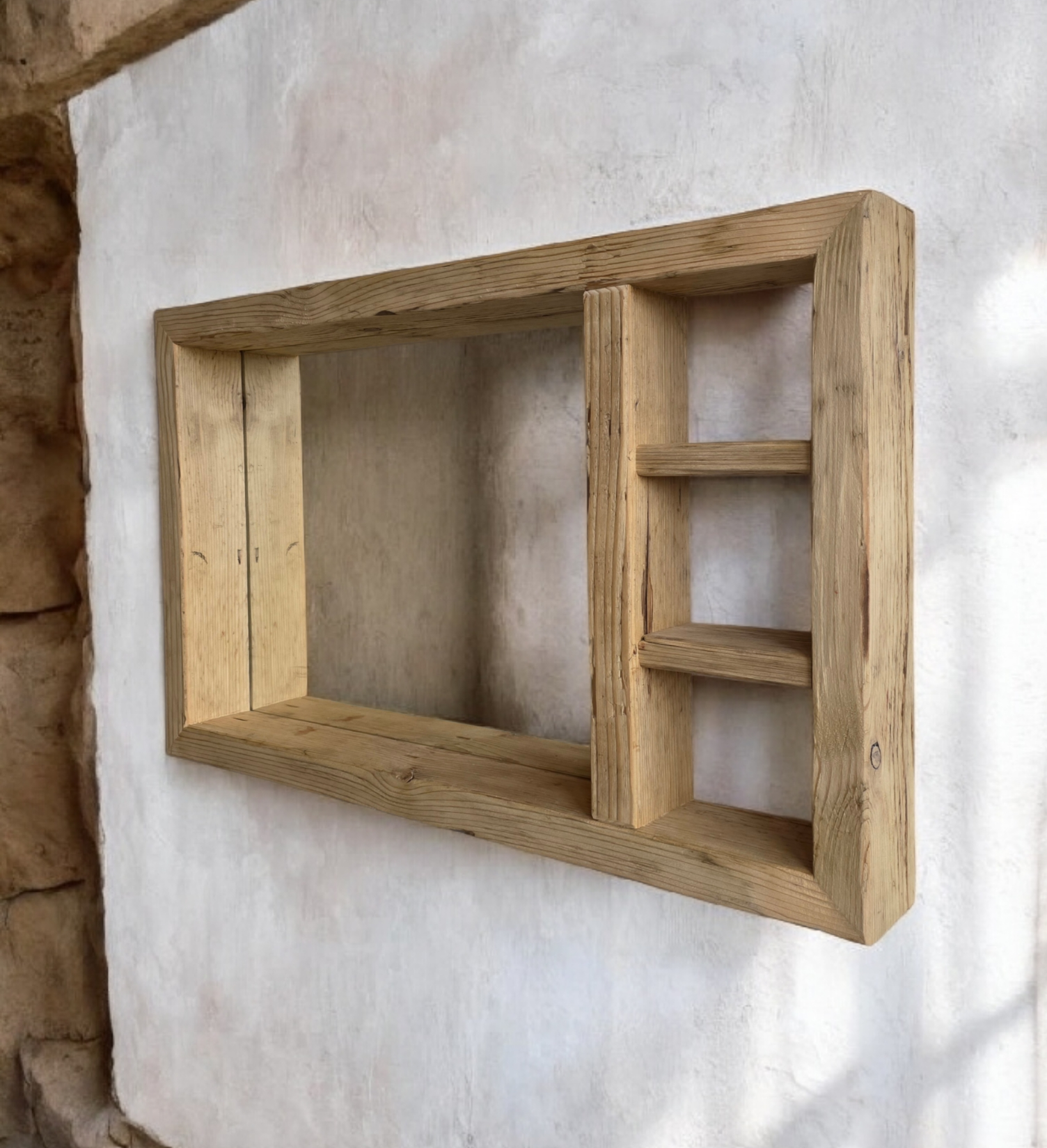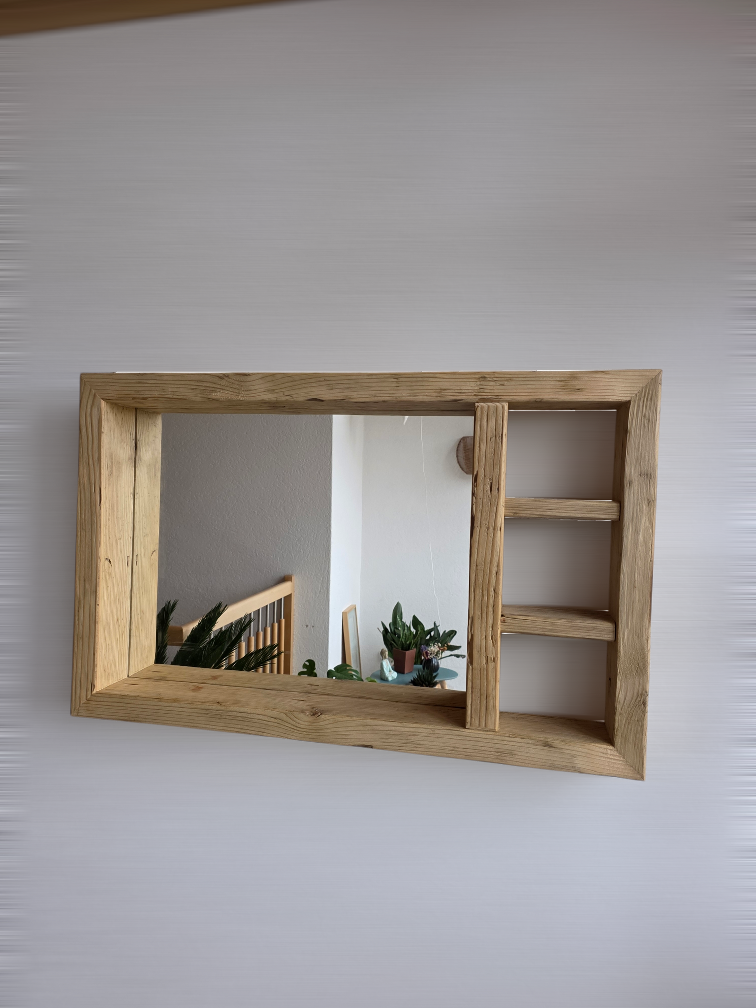 Hier möchte ich euch diesen einzigartigen Spiegel, welchen ich aus alten Gerüstbohlen angefertigt habe, vorstellen. Ob als Spiegel oder Regal oder auch Spiegelregal der Einsatzort ist hier sehr vielfältig.