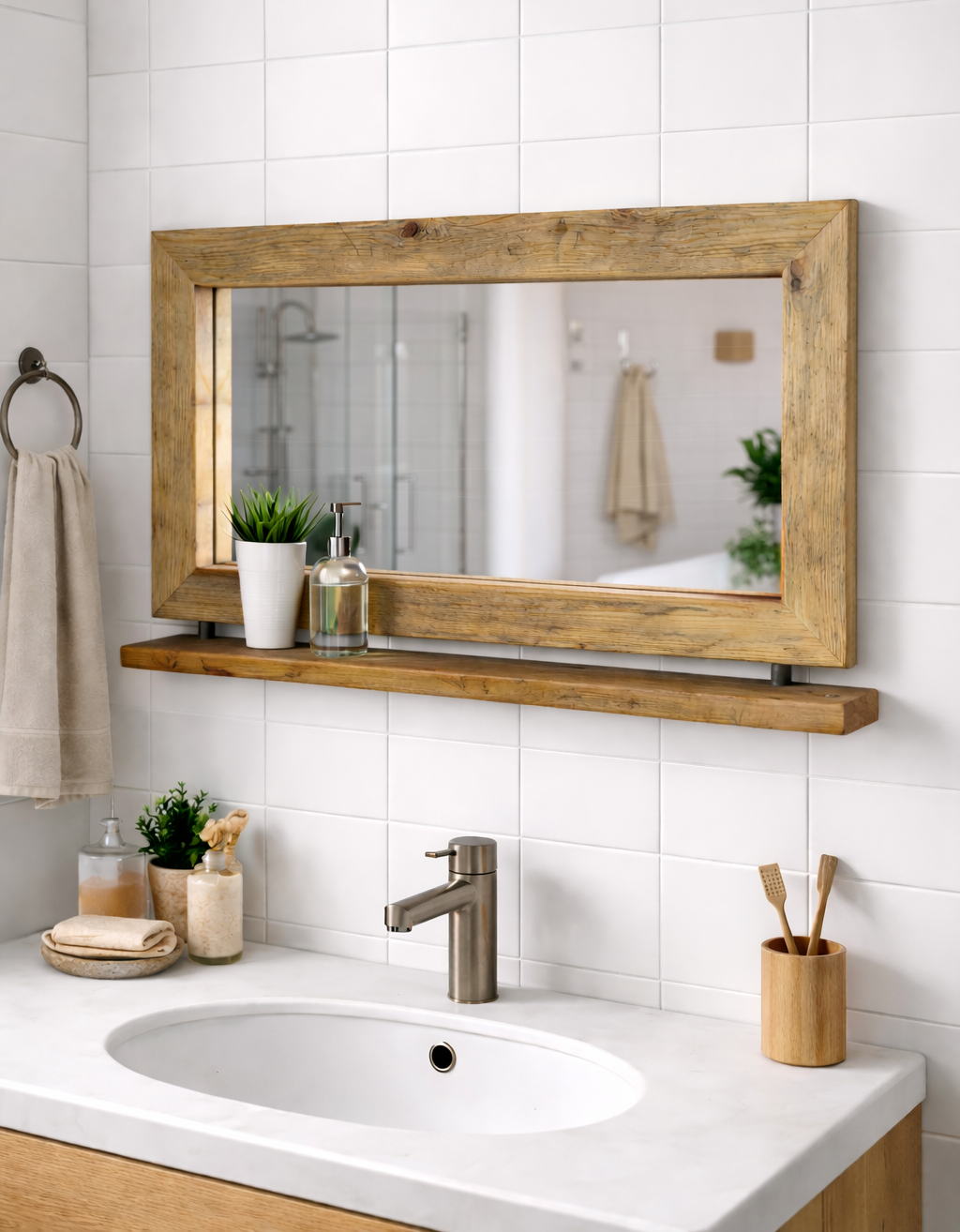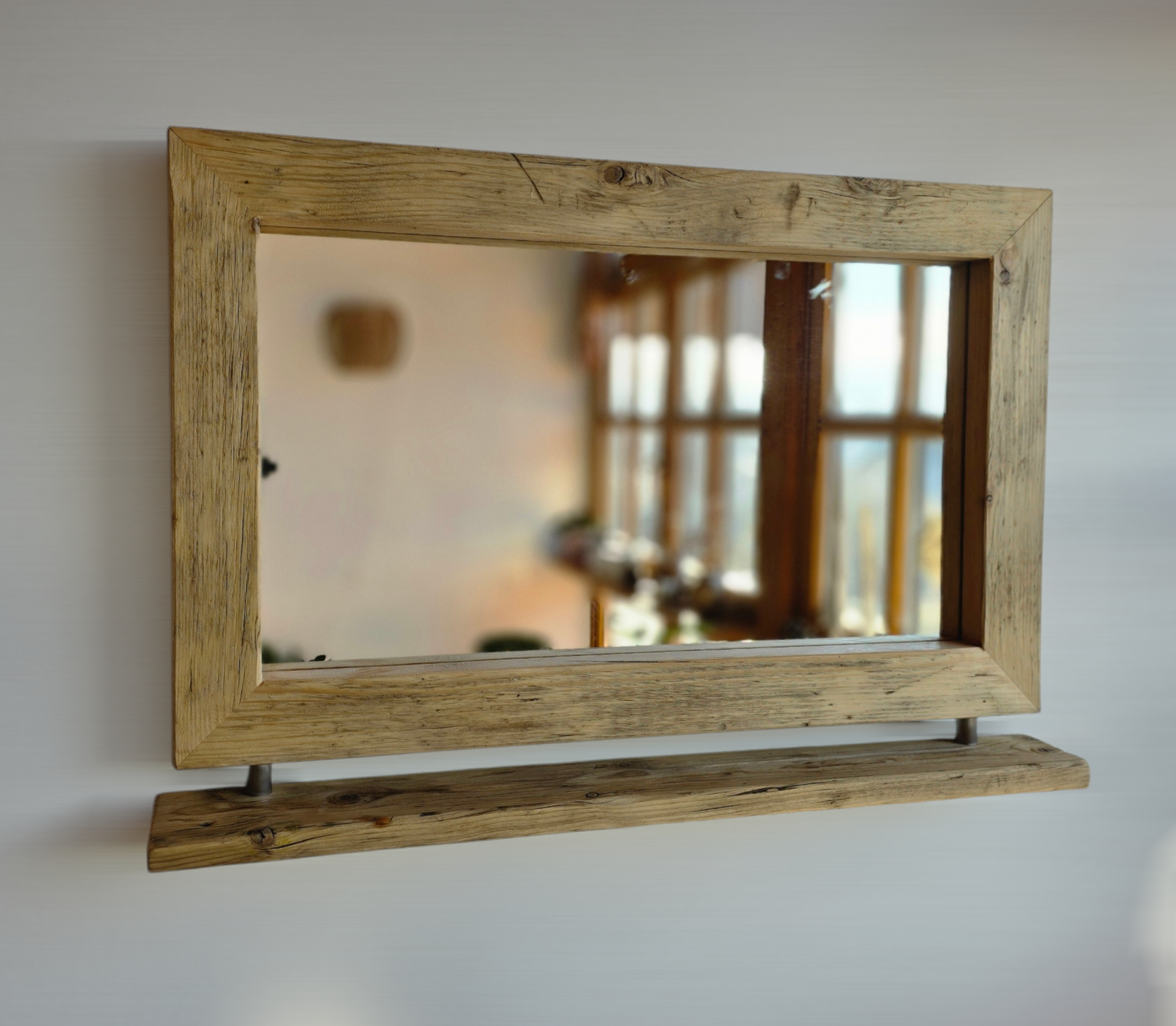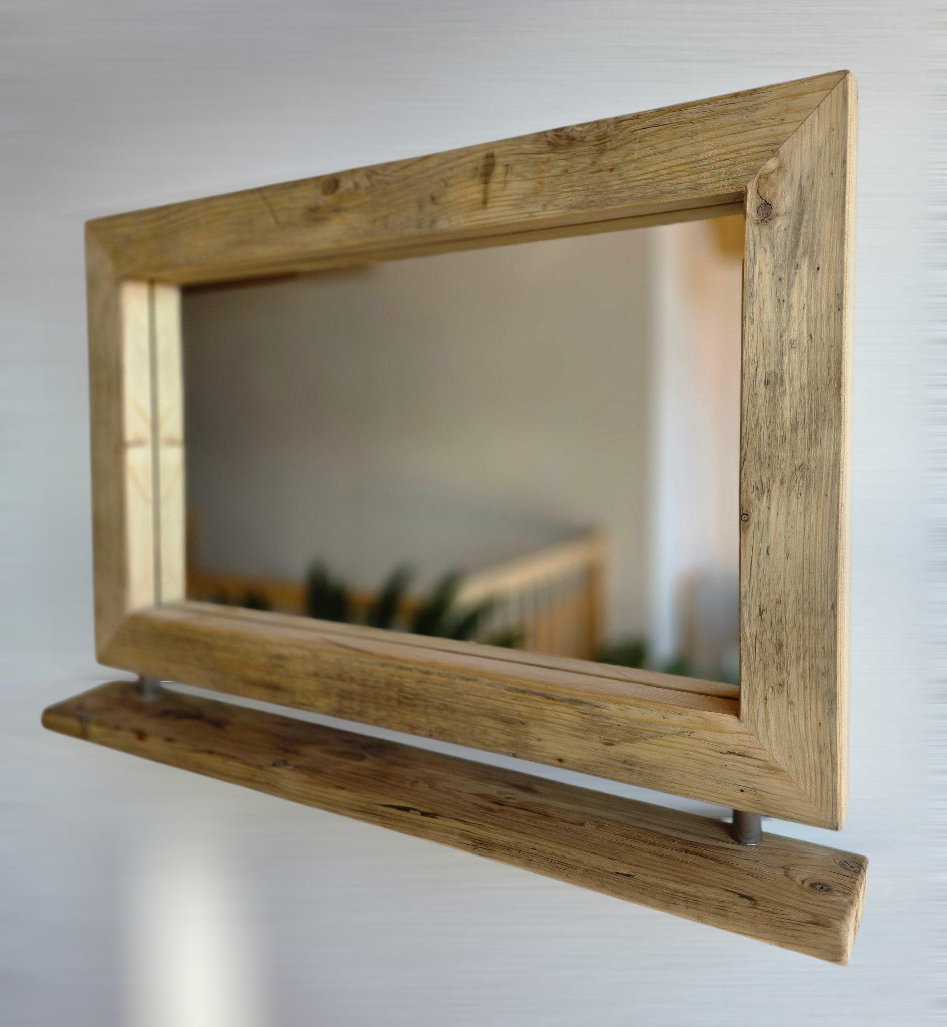 🪞 Spiegel aus Altholz mit Edelstahl-Ablage – Handgefertigtes Unikat