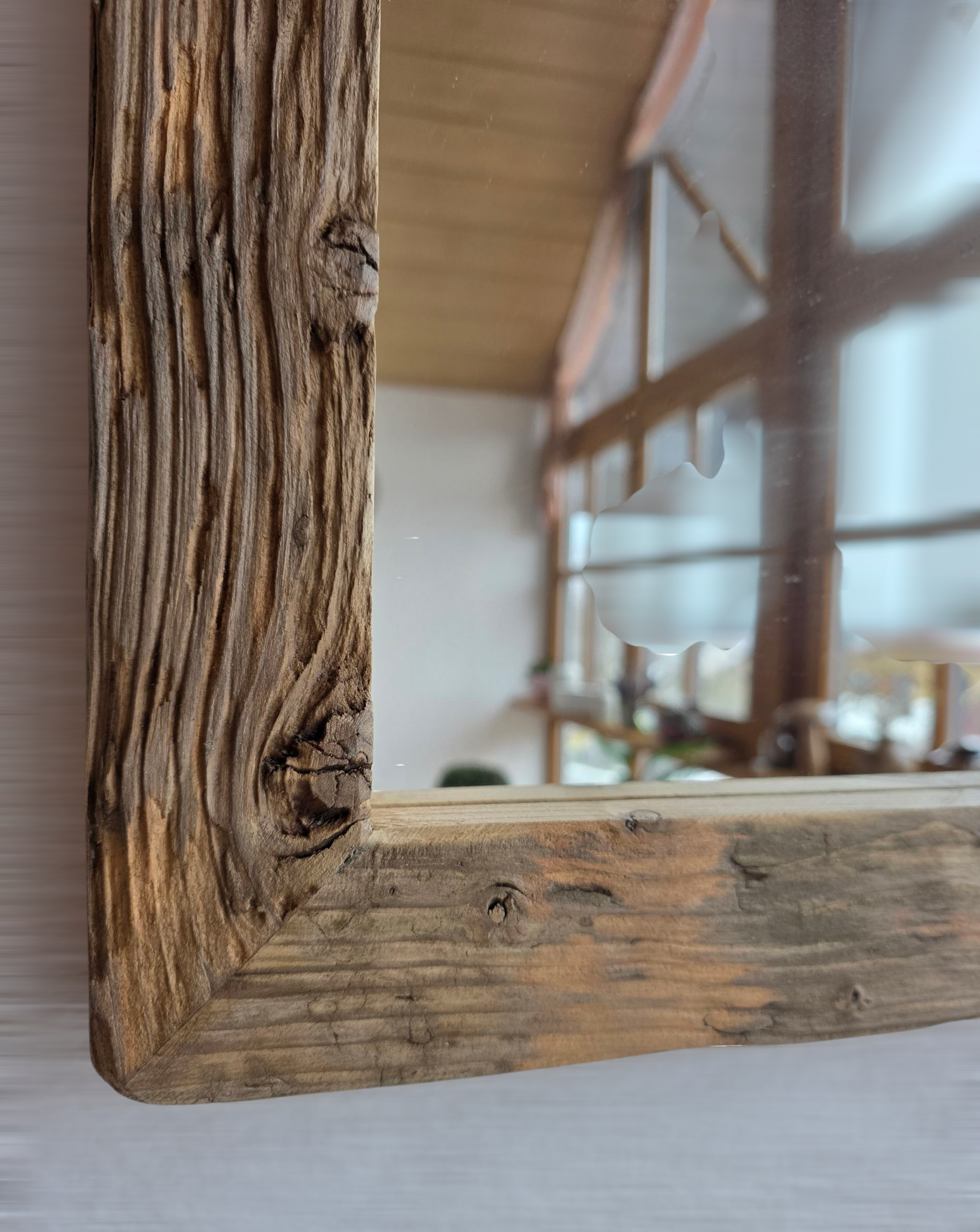 Hier möchte ich euch diesen einzigartigen Spiegel zeigen, welchen ich aus alten Gerüstbohlen fertige, klassisch. Dieser Altholzspiegel im Loft-Stil hat alle Vorzüge, um das Highlight Ihrer Dekoration zu werden! Der Spiegel wird in Handarbeit hergestellt (100 % Made in Germany) und überzeugt in der Wohnung, im Schlafzimmer oder im Wohnbereich. Ein Blickfang und Schmuckstück zugleich!