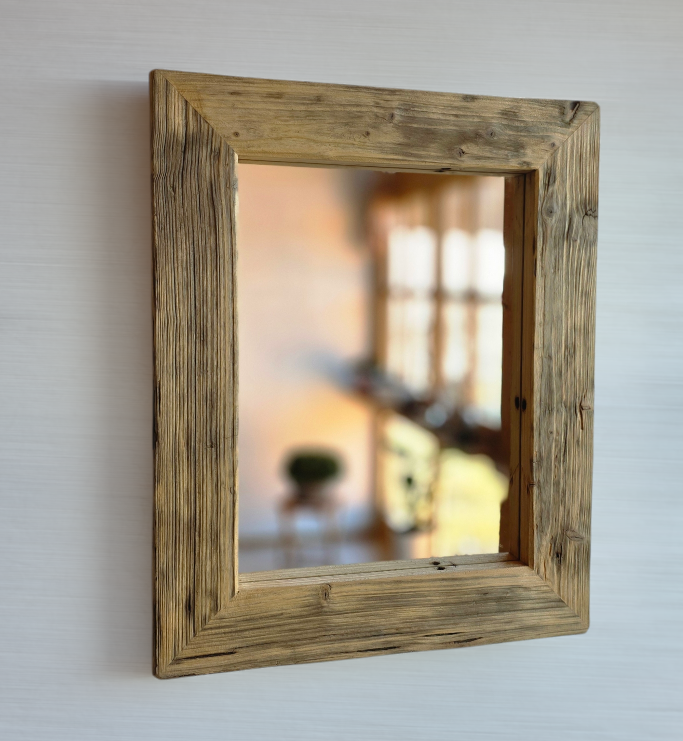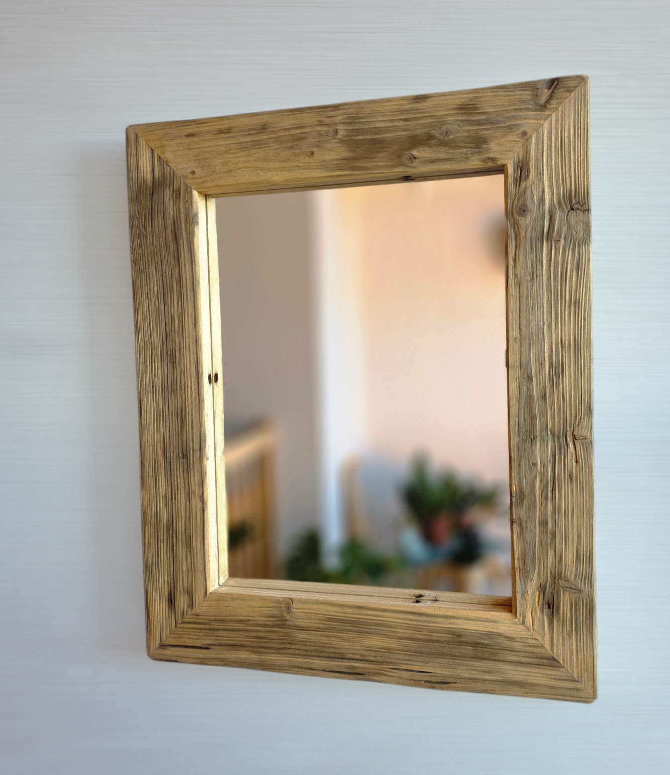 Altholz Spiegel S2235 antik Wandspiegel 42 x 52 upcycling nachhaltig Handarbeit Badspiegel Toilettenspiegel optik Alteiche