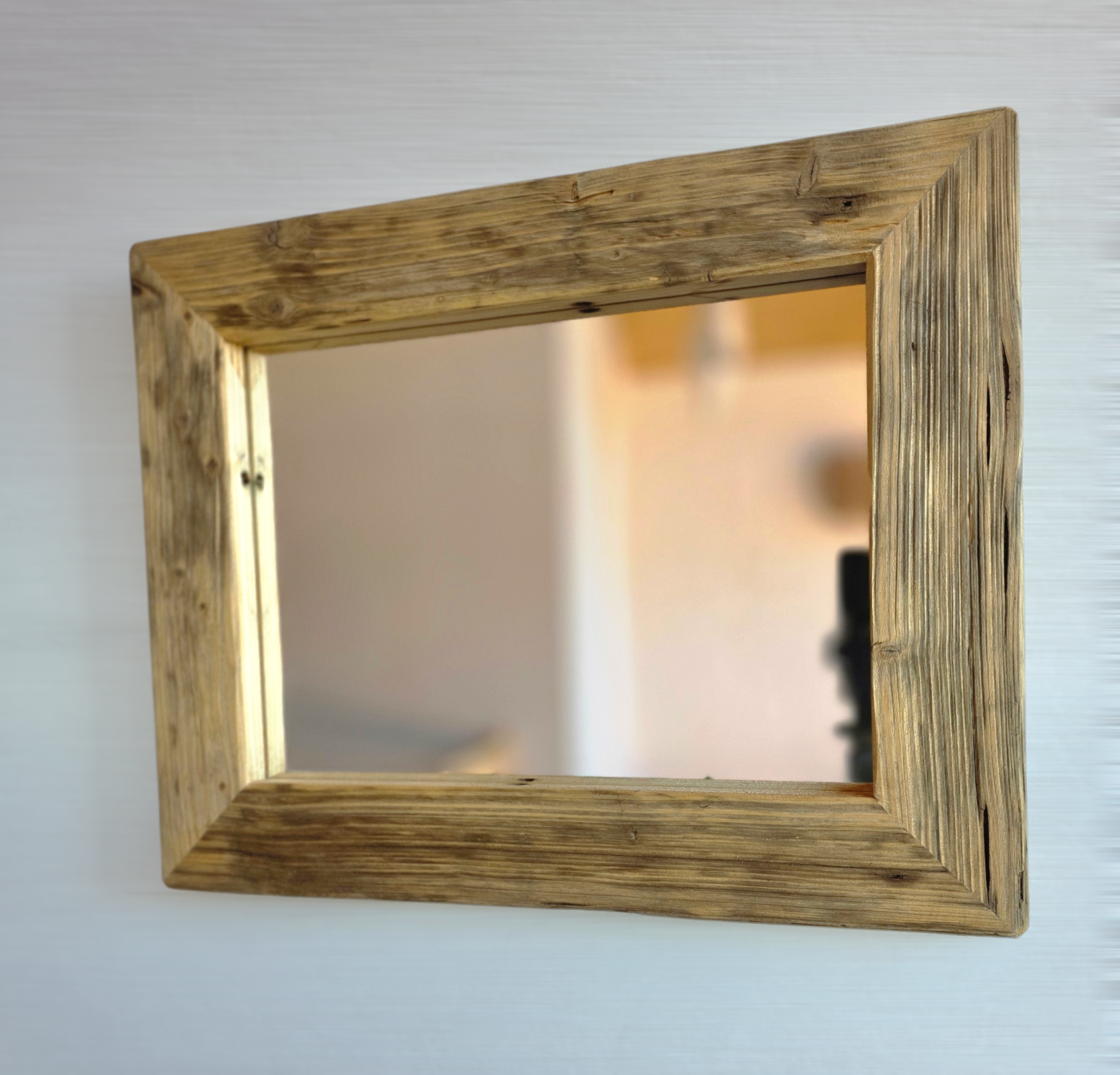 Dieser einzigartige Altholzspiegel hat alle Vorzüge, um das Highlight Ihrer Dekoration zu werden! Der Spiegel wird in Handarbeit hergestellt (100 % Made in Germany) und überzeugt in der Wohnung, im Schlafzimmer oder im Wohnbereich. Ein Blickfang und Schmuckstück zugleich!