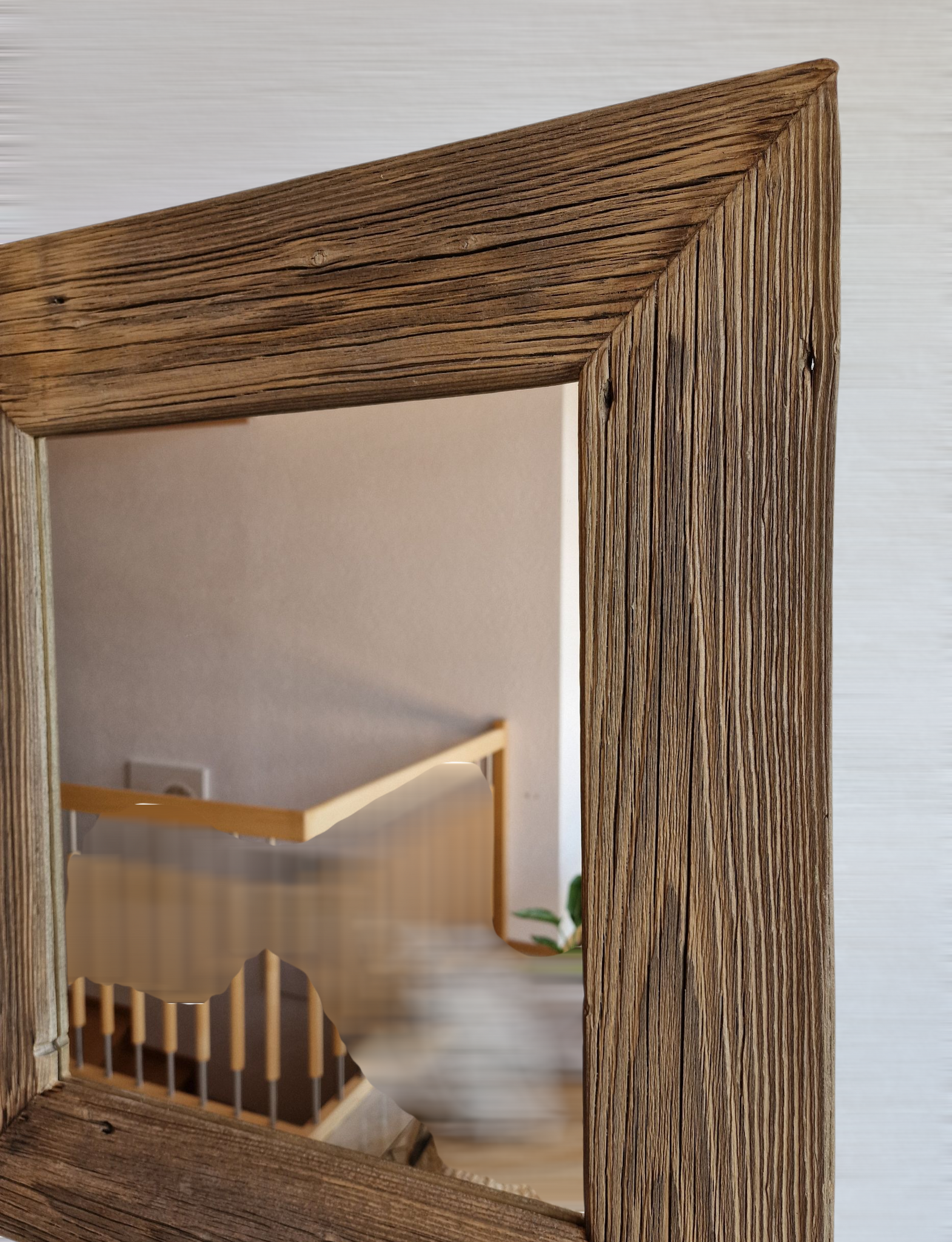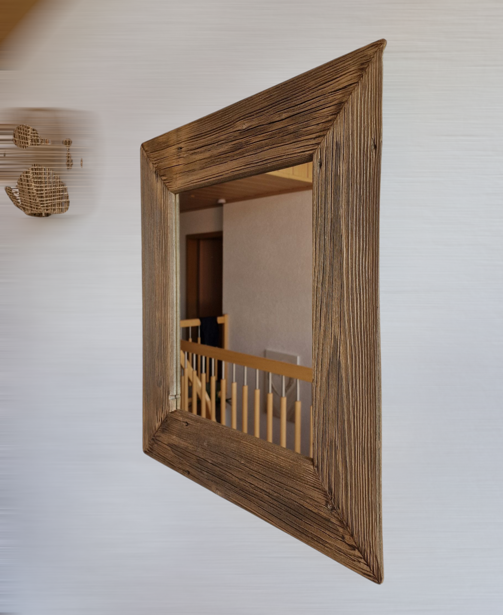 Der imposante und bildhauerische Altholzspiegel hat alle Vorzüge, um das Highlight Ihrer Dekoration zu werden! Der Spiegel ist in Handarbeit hergestellt (100 % Made in Germany) und überzeugt in der Wohnung, im Schlafzimmer oder im Wohnbereich. Ein Blickfang und Schmuckstück zu gleich!