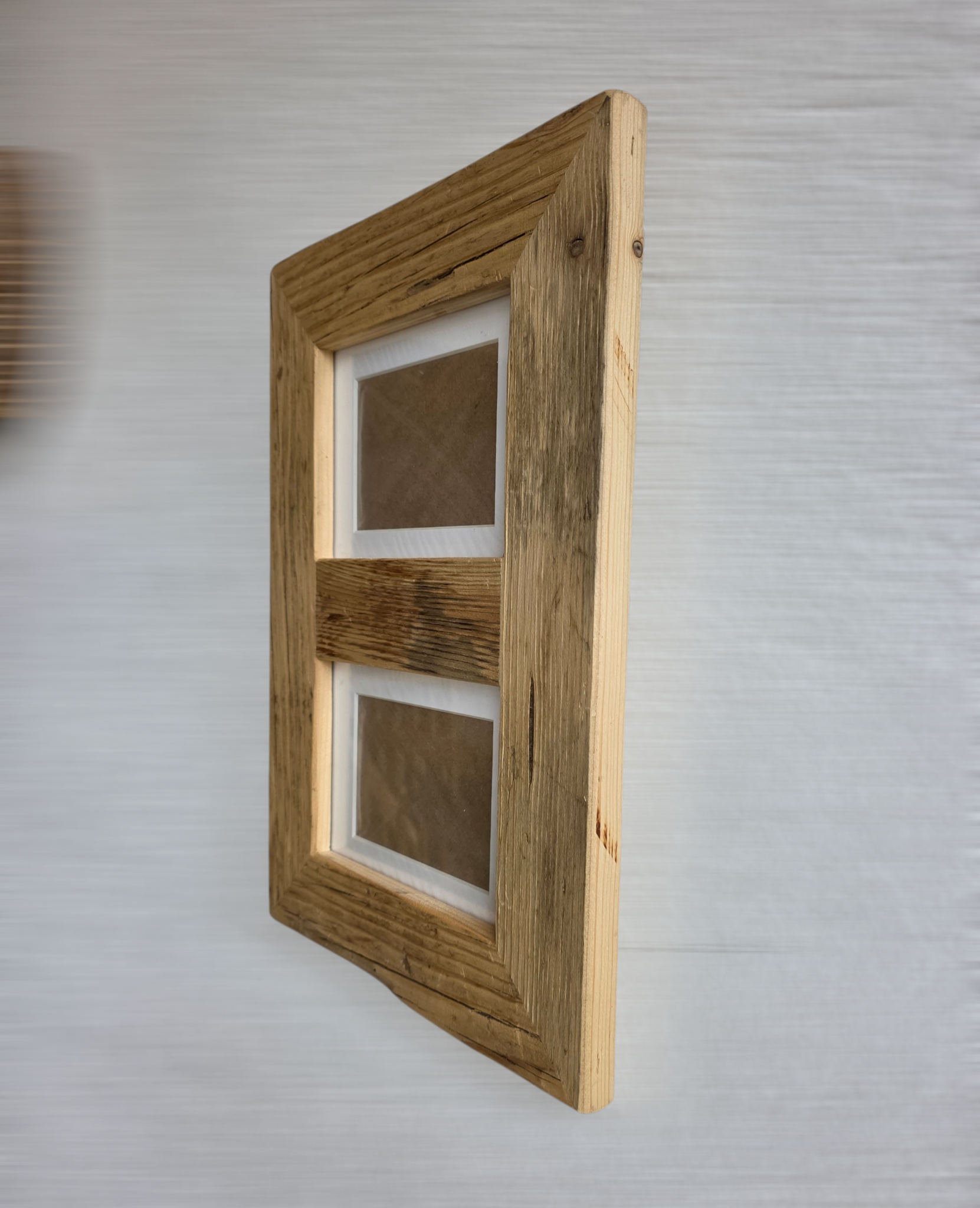 Die Bretter/Balken werden alle geschliffen, gebürstet, lackiert und thermisch sowie mit speziellem Wurmmittel behandelt. inkl. Glasfront, Passepartout und abnehmbarer Rückwand.